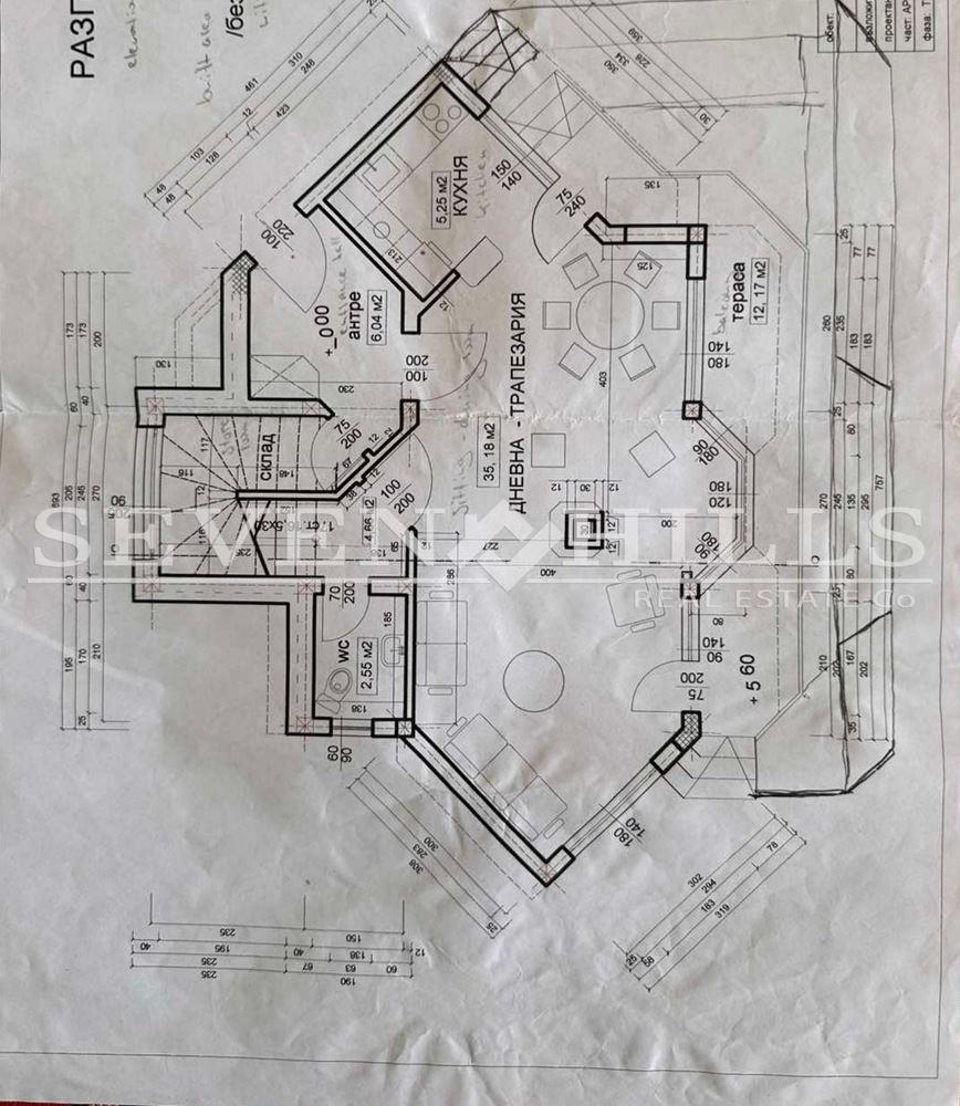 -- На първият етаж са разположени огромна всекидневна с кухня и трапезария,тоалетна, склад, и антре.